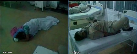 Báo điện tử Headline Today xác nhận bệnh nhân phải ngủ dưới đất, trong khi cảnh sát nằm ngáy khò khò trên giường. Trước đó, bệnh nhân được 4 cảnh sát đưa vào bệnh viện.