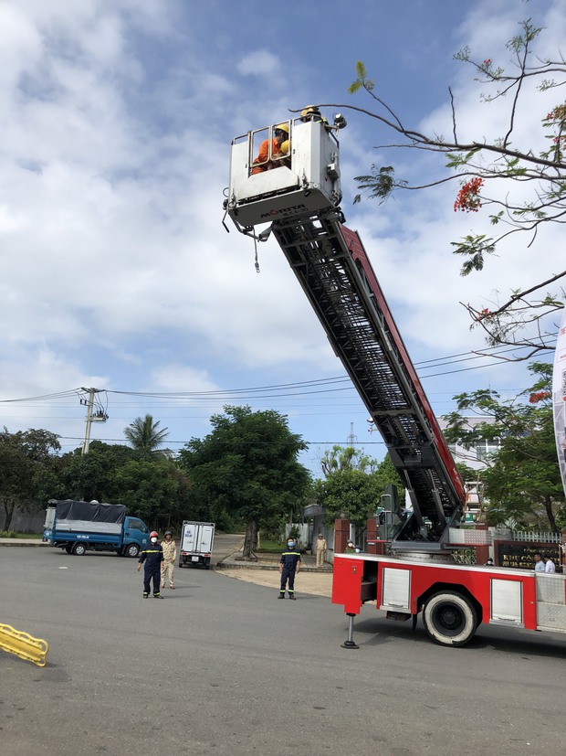 Ngay lập tức, trung tâm đã điều động 1 xe cứu nạn cứu hộ của Phòng Cảnh sát PCCC và CNCH (Công an TP Đà Nẵng) và 1 xe thang của Đội PCCC và CNCH Công an quận Hải Châu (Đà Nẵng), cùng các các chiến sĩ nhanh chóng đến hiện trường.