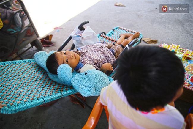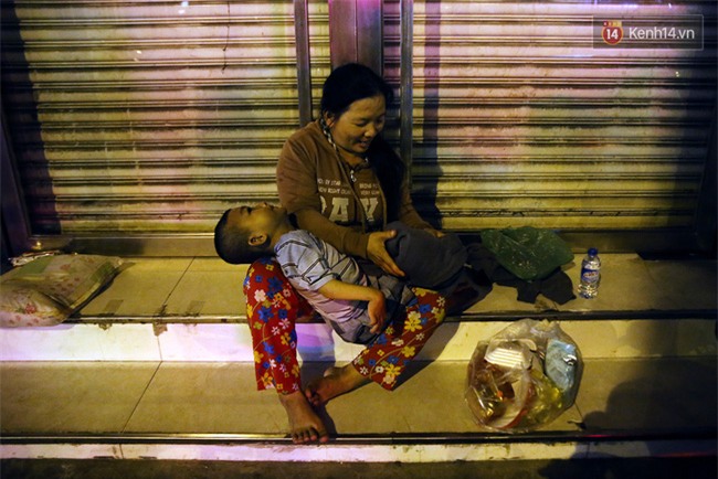 Khi mệt, họ dừng chân nghỉ ngơi ở góc hiên một cửa hàng đã đóng cửa trên đường Trần Hưng Đạo. "Hôm nào bán xong sớm thì chúng tôi về nhà tầm 11h khuya, hôm nào mưa gió thì cũng phải 2,3 giờ sáng. Một ngày tôi ngủ có 2 tiếng thôi, vì thằng Quý hay giật mình gọi mẹ nửa đêm, nên tôi cũng không dám ngủ say...", chị kể.
