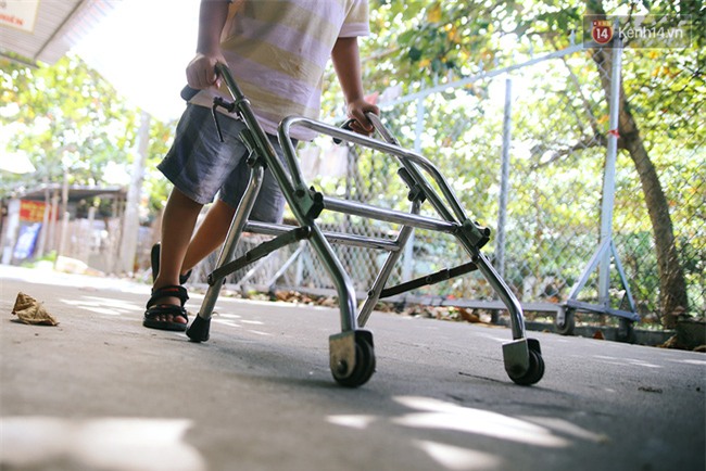 Còn Đạt cũng bị khuyết tật ở chân, không thể đi lại bình thường mà phải dựa vào chiếc xe đẩy của một nhà hảo tâm dành tặng. "Chiếc xe này giờ đã quá nhỏ so với chiều cao của nó, tôi đang dành tiền mua cho con chiếc xe khác để nó không bị gù lưng khi di chuyển", chị Nguyệt nói.