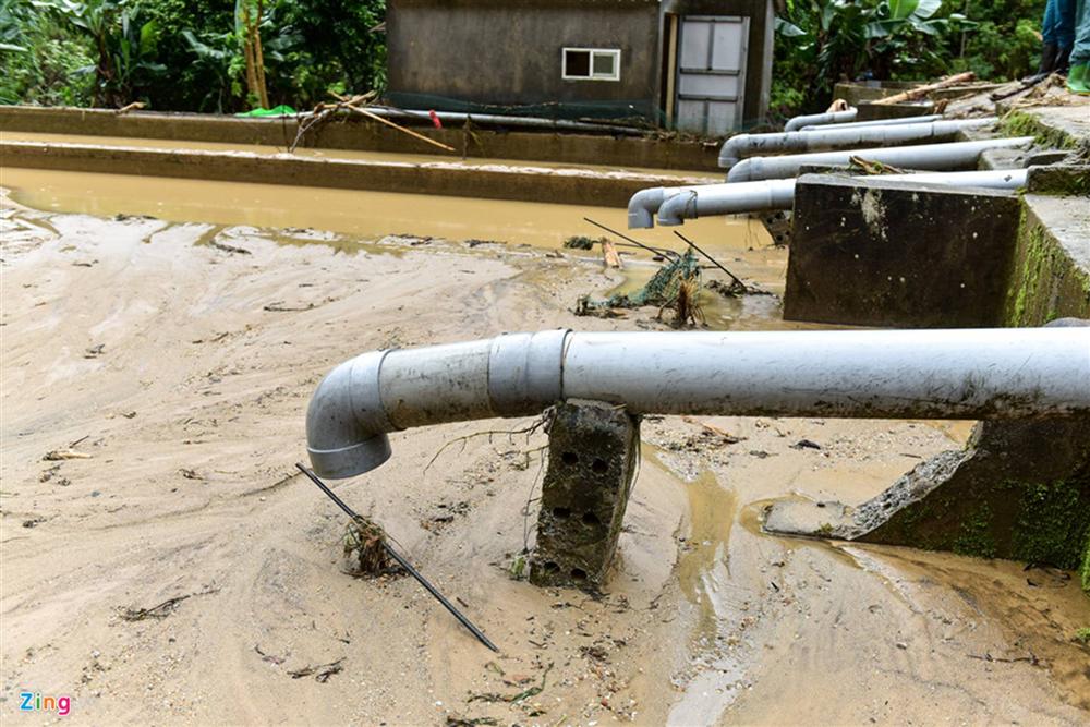Những ao nuôi cá giờ phủ đầy bùn đất. Phần lớn cá đã thoát ra suối, trong đó có những con cá tầm bố mẹ nặng trên hơn 20 kg. Anh chỉ cứu được gần một tấn, đem về Lai Châu bán. Mọi người biết hoàn cảnh nên đã mua ủng hộ anh.