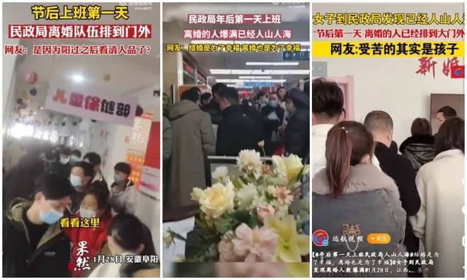 Đầu tháng 1, một số phương tiện truyền thông Trung Quốc cũng đưa tin rằng ba năm sau khi đại dịch bắt đầu, các thành phố đã chứng kiến "làn sóng ly hôn".