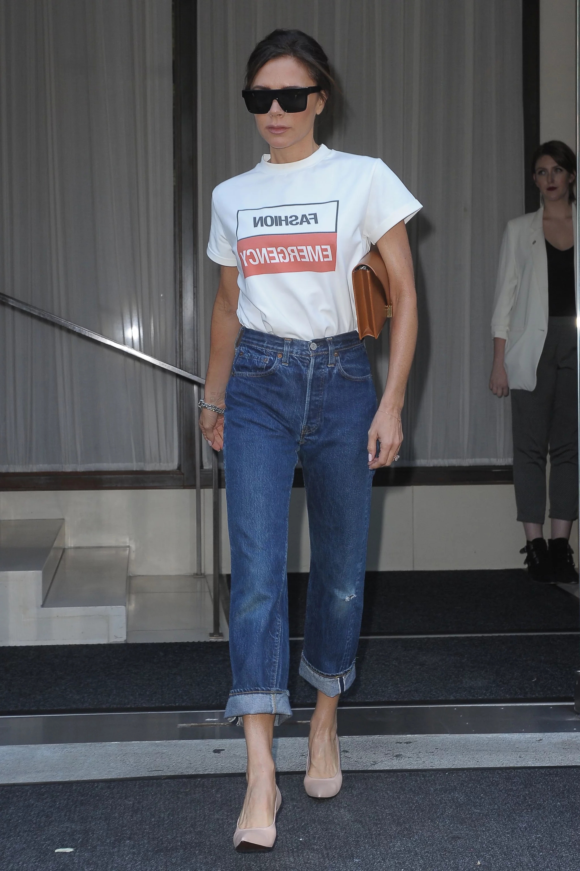 Giày mũi nhọn là một trong những món thời trang "kinh điển". Kiểu giày này sẽ giúp set trang phục của bạn trở nên chỉn chu và sang trọng hơn. Victoria Beckham kết hợp giày mũi nhọn với đa dạng các kiểu trang phục, từ set áo thun + quần jeans năng động cho đến những outfit đậm chất công sở.