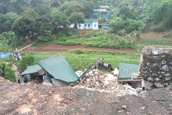 Rạng sáng, đất đá từ núi Lũng Nọi đổ ập xuống, cuốn phăng căn nhà gỗ lợp ngói proximang của bà Chẹ (xã Vũ Nông, huyện Nguyên Bình, Cao Bằng). Vụ việc khiến cháu nội của bà Chẹ tử vong.