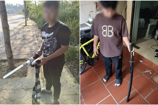 Xác minh vụ việc 2 thiếu niên "khoe" dao kiếm trên mạng xã hội