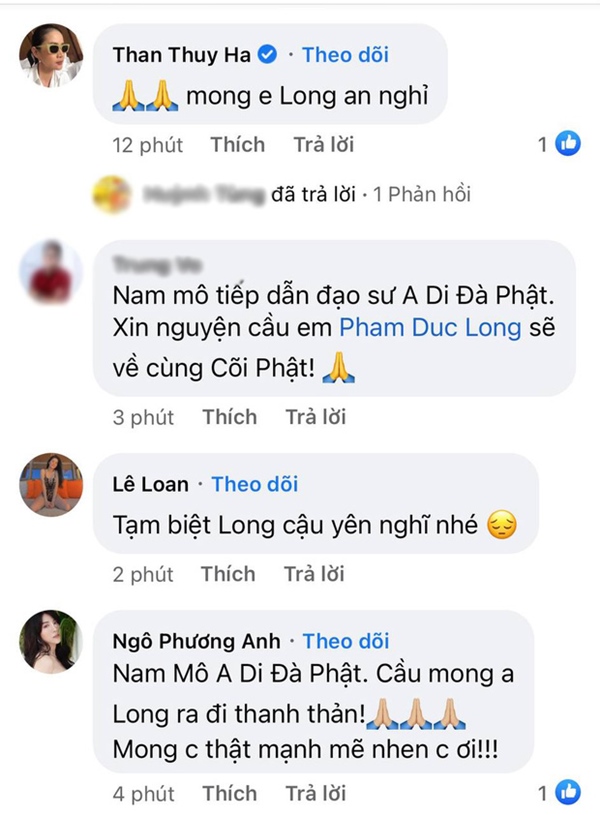 Rất đông các nghệ sĩ và dàn sao Vbiz đã gửi lời chia buồn tới diễn viên Đức Long và gia đình trên trang cá nhân. Nhiều người vẫn chưa thể tin được nam diễn viên trẻ đã mãi mãi ra đi.