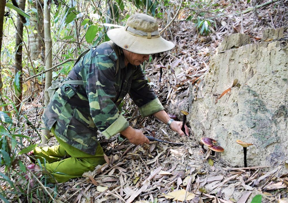 Trong nhóm 3 người hái nấm này, chuyện của ông Nguyễn Văn Hoan (47 tuổi, xã Đại Đồng, Đại Lộc) được nhiều người truyền tai nhau.
