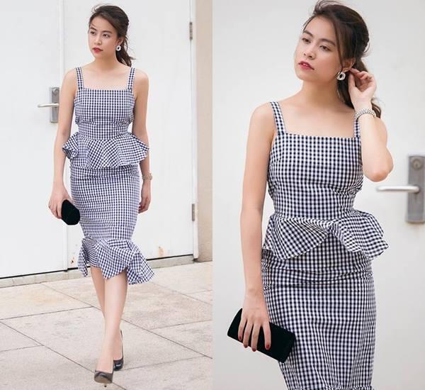 Hoàng Thùy Linh trẻ trung xuống phố với bộ váy kẻ caro.