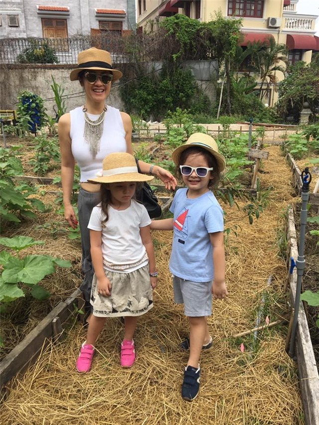 Ca sĩ Hồng Nhung đưa hai con đi thăm thú vườn rau, cây cảnh ở ngoại thành.