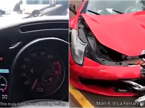 Khi cô gái đang đứng giữa đường thì bất ngờ, một chiếc ô tô màu đỏ đang đi với tốc độ rất nhanh lao đến, đâm trực tiếp vào người cô. Cô gái này đã bị hất tung người lên không trung, lộn một vòng rồi ngã xuống đường kinh hoàng.