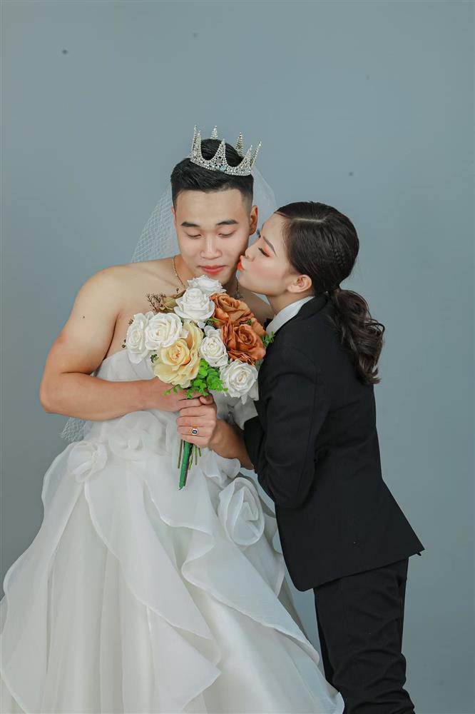 Được biết, hai nhân vật chính trong loạt ảnh trên là 'cô dâu' Anh Đức (sinh năm 1994) và 'chú rể' Kim Anh (sinh năm 1998), hiện tại cả 2 đang sinh sống và làm việc tại Thái Nguyên.