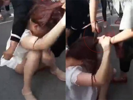 Đầu tiên phải kể đến màn đánh ghen hội đồng ngay giữa phố Puyan, thuộc tỉnh Hải Nam, Trung Quốc.