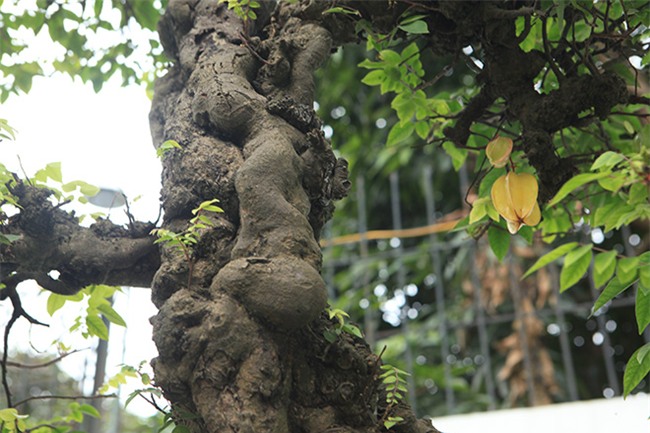 Theo vị chủ nhân, cây khế này là dòng khế ta chứ không phải dòng khế gân. Khế là dòng cây giòn nên rất khó uốn, phải được trồng, chăm sóc từ nhỏ mới có được hình dáng như thế này.