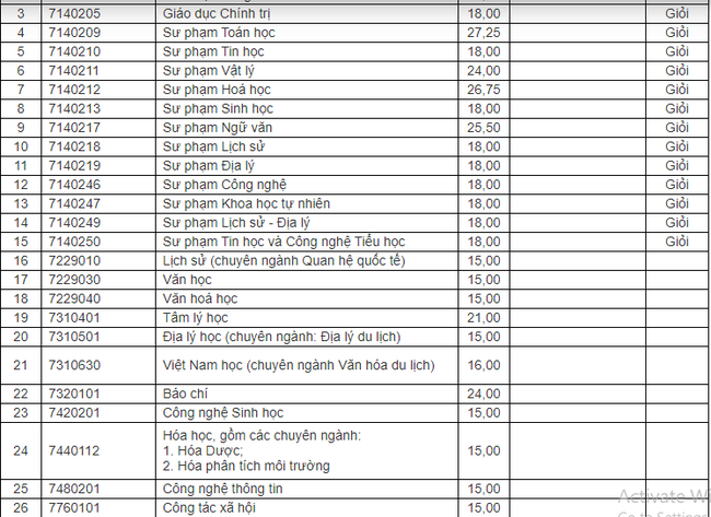 Điểm chuẩn áp dụng đối với tất cả các ngành ngoài sư phạm.