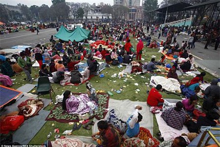 Người dân cắm trại trên đường phố thủ đô Kathmandu do lo ngại các cơn dư chấn. |