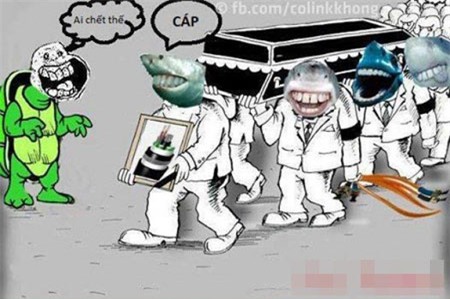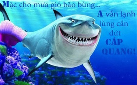 Một bức ảnh chế của cư dân mạng về việc cá mập cắn đứt cáp viễn thông.