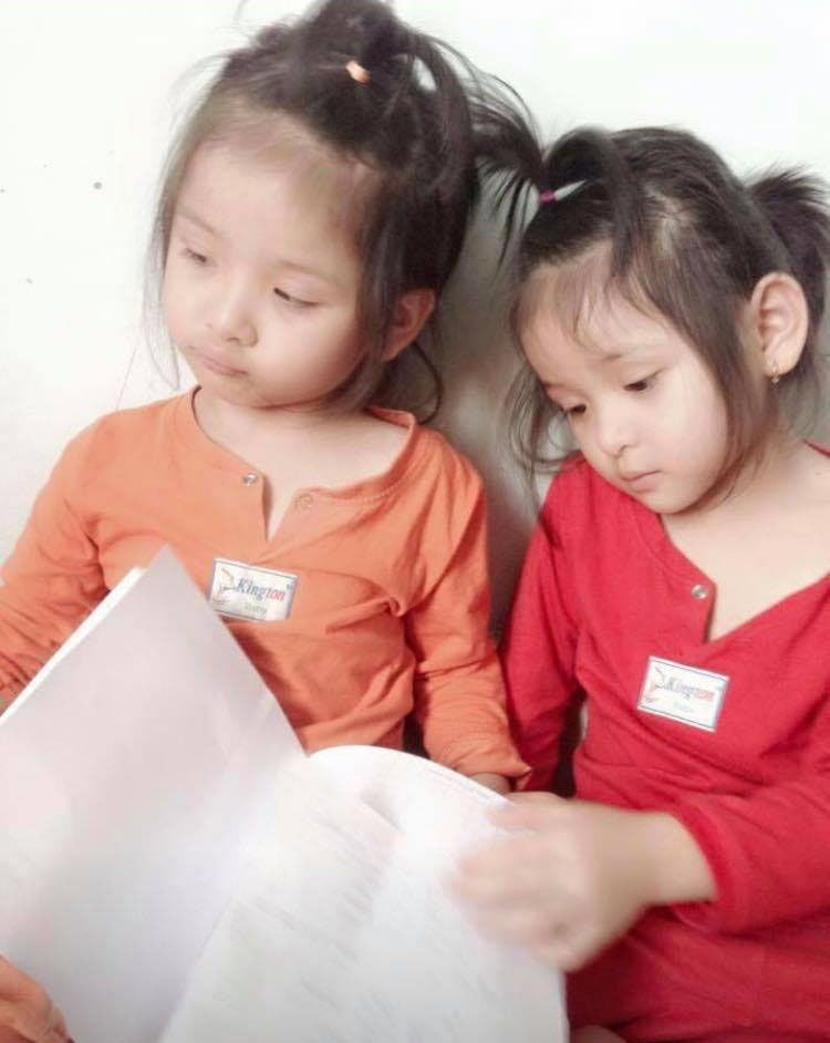 Chia sẻ với Tintuconline, mẹ của hai bé cho biết: “Bé chị là Lê Anh Kỳ. Bé em là Lê Đan Nguyên. Hai em sinh năm 2011. Đến hết tháng thứ 3 qua tháng thứ 4 của thai kỳ, mẹ mới phát hiện thai.