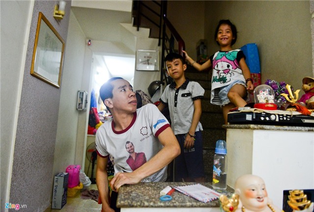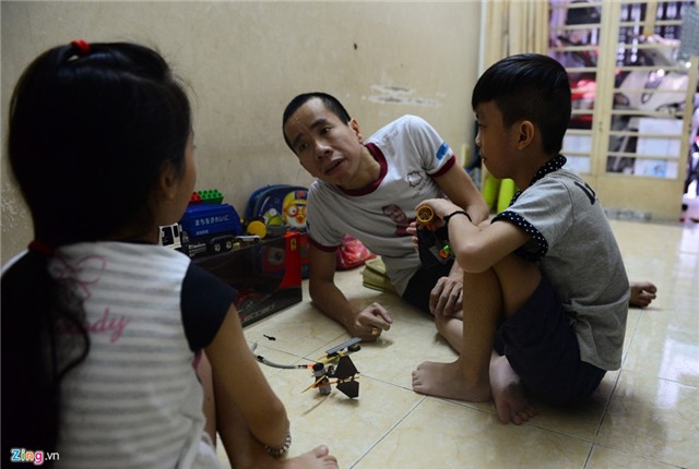 | Sau công việc ở cơ quan, anh Đức trở về nhà với con cái. Nghỉ ngơi được đôi phút, anh tiếp tục làm thêm công việc giới thiệu về du lịch cho những người Nhật Bản để có thêm thu nhập trang trải cho cuộc sống gia đình. |