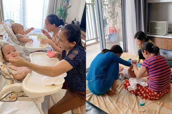 Ngọc Hương đăng ảnh hai con 7 tháng tuổi, dân mạng lại khen vì bé lớn như đã 2 tuổi.