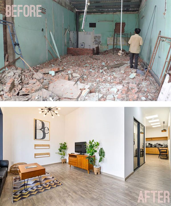 Ngôi nhà cấp 4 ở Sài Gòn của vợ chồng anh KS Đinh Đức Toàn và chị Dương Ngọc Khánh dưới đây thật sự lột xác sau khi cải tạo. Căn nhà cũ kĩ, ẩm mốc sau khi được đầu tư trở thành homestay hiện đại, thoáng với tính sử dụng cao. Được biết, căn nhà tự thiết kế do anh là người làm trong ngành xây dựng nên đảm nhiệm luôn công việc giám sát thi công. Đồng thời, gia đình tận dụng dùng những đồ cũ còn dùng tốt nên chi phí cho toàn bộ việc cải tạo và nội thất của căn nhà gói gọn là 300 triệu đồng.