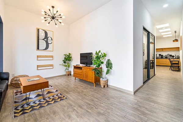 Nội thất tối giản, thiên hướng hiện đại bằng việc sử dụng các đồ gỗ công nghiệp, sàn nhựa giả gỗ sẽ tốn ít chi phí hơn nội thất cao cấp và hoa văn cầu kỳ phức tạp. Cải tạo nhà cấp 4 rất thích hợp với những bạn yêu phong cách trẻ trung, hiện đại bởi sự linh động trong phân chia không gian, không bị giới hạn bởi các nguyên tắc như kiến trúc cổ điển và tân cổ điển.