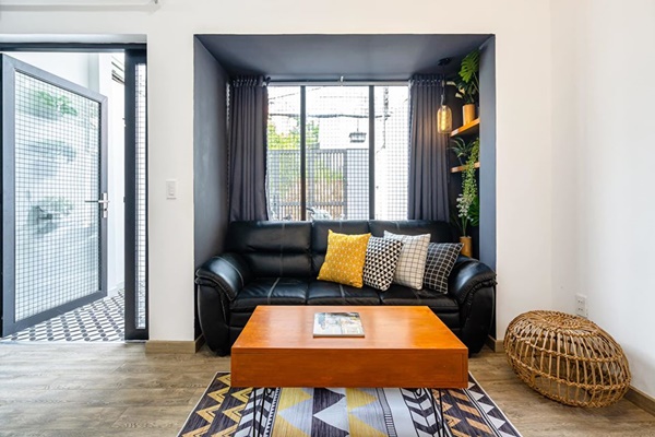 Sắp xếp nội thất sau cải tạo giúp ngôi nhà thật sự khác biệt. Chủ nhân chọn ghế sofa da màu đen,