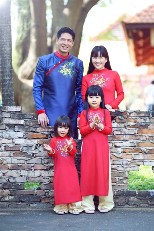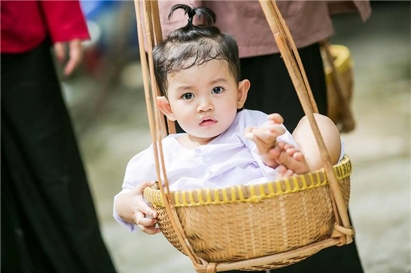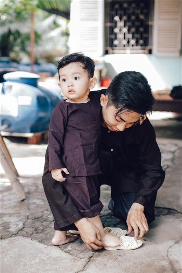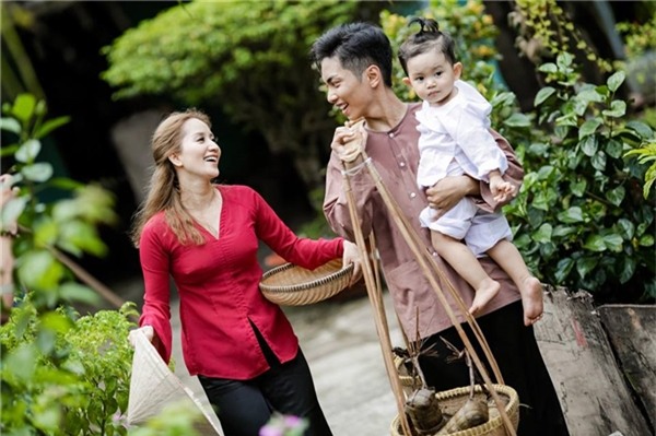 Năm nay, gia đình Khánh Thi lại mang đến hình ảnh mới lạ, khác biệt khi hóa thân thành những người nông dân Nam bộ chân chất. Ku Bi, con trai của Phan Hiển, Khánh Thi được diện bộ áo bà ba màu trắng tinh tươm như những công tử miền Nam thời xa xưa.
