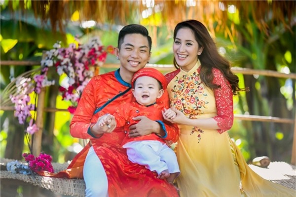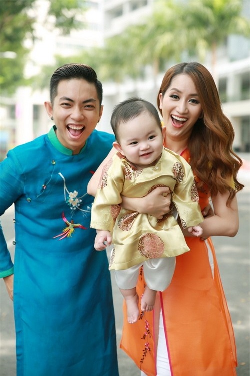 Trong khi đó, với Tết năm trước, con trai Phan Hiển – Khánh Thi lại khiến khán giả “rụng tim” với hình ảnh chiếc áo dài gấm nhỏ xinh. Thân hình bụ bẫm của cậu bé trông vô cùng đáng yêu.
