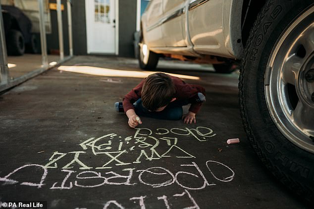 Cậu bé có thể viết ở bất cứ nơi đâu.