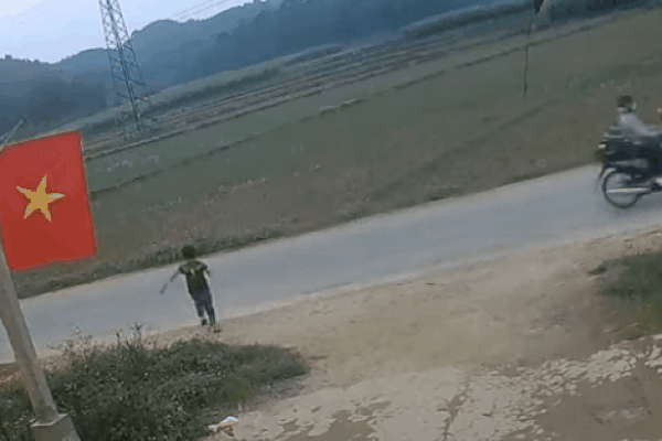 Theo hình ảnh trong đoạn clip ghi lại, trời rất nắng, em bé đạp xe, đeo khẩu trang, trên xe em còn treo một túi đồ. Lúc đến chốt, cán bộ trực tại đây đã gọi em dừng xe đạp lại và hỏi: