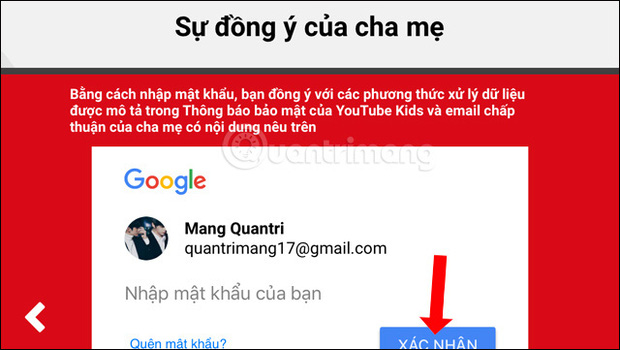 - Biết tên và mật khẩu tài khoản YouTube của con.