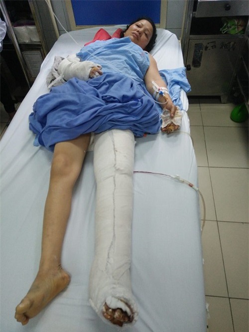 Chị Trần Thị Thơm mẹ của bệnh nhân Phúc cũng bị thương nặng