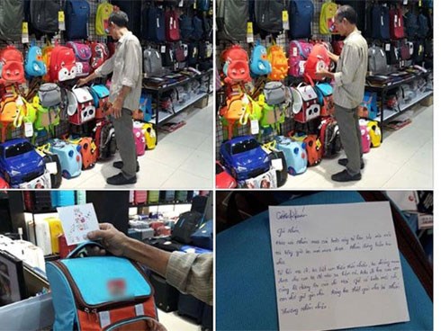 Cha nghèo mua balo rồi nhờ nhân viên viết thiệp gửi con: “Mẹ đi, ba biết con thiếu thốn nhiều…”