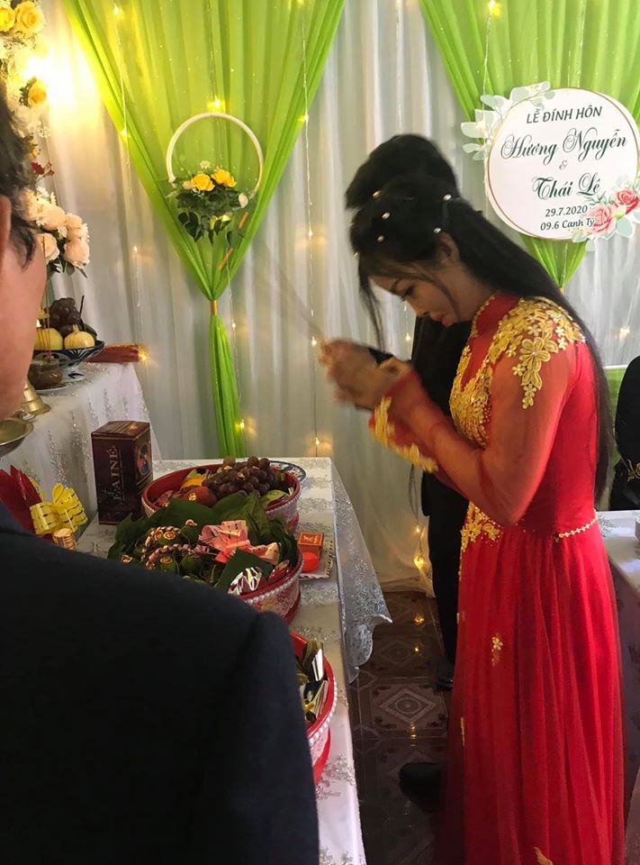 "30/4 mình nghỉ lễ về quê anh cũng về chung với mình vì cả anh và mình điều cùng quê nên nhân cơ hội này anh đưa mình về ra mắt gia đình anh luôn. Rất mừng là cả hai bên ba má đồng ý cho tụi mình quen nhau. Tìm hiểu thêm 1 thời gian cả hai thấy hợp và muốn đi đến tương lai nên nhờ ba má hai bên xem ngày nên duyên. 29/7 vừa rồi chúng mình đã đính hôn", Hương chia sẻ.