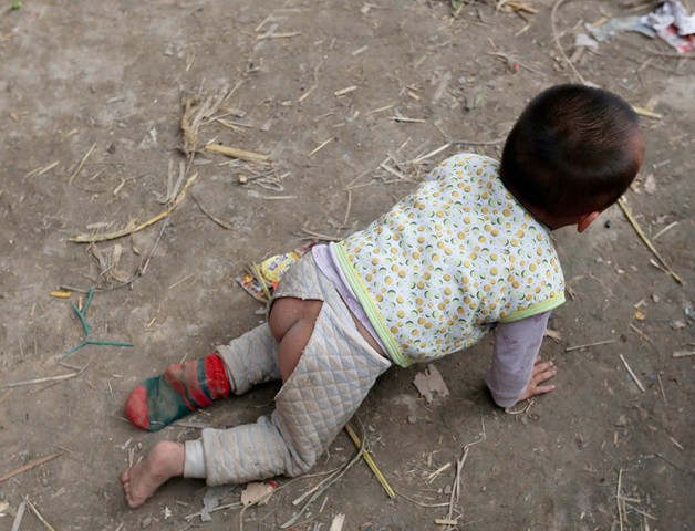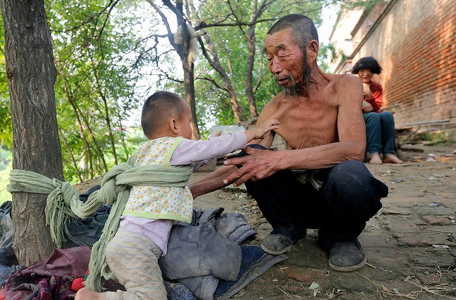 Phải ra ngoài làm mướn kiếm tiền, con nhỏ phải cần người chăm sóc nhưng mẹ của đứa trẻ lại không thể làm được điều này, ông lão lắm lúc cũng hết cách đành phải buộc con vào gốc cây để khỏi chạy lung tung