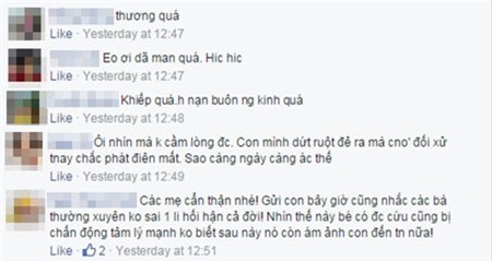 Những bình luận bày tỏ thương xót và phẫn nộ với hành động tội ác đối với đứa bé - (Ảnh chụp màn hình). |