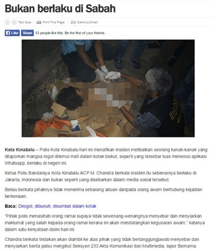 Thông tin về đứa bé được đăng tải trên báo Malaysia vài ngày trước - (Ảnh chụp màn hình) |