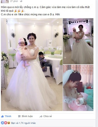 Mới đây, trên một diễn đàn dành cho chị em phụ nữ, một bà mẹ trẻ đã chia sẻ tấm hình bản thân đang diện trang phục cô dâu, trang điểm xinh đẹp, rạng rỡ trong ngày cưới của mình.
