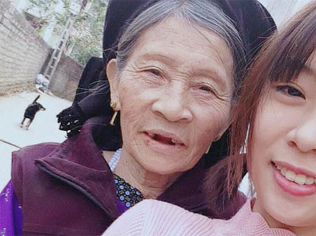 "Năm nay mừng thọ bà em 75 tuổi. Tuổi thơ của bà là những ngày chăn trâu cắt cỏ, chân lấm tay bùn, một mình bà vật lộn với cuộc sống mưu sinh (bởi các cụ đã mất khi bà vừa mới sinh ra), rồi những ngày chiến tranh bom đạn khói lửa, ông ra trận, bà ở nhà nuôi các bác khôn lớn, rồi chăm bẵm em lớn khôn từng ngày, bởi em không có cha, không có họ nội, người mẹ tật nguyền chẳng được minh mẫn do chất độc màu da cam cũng rời xa khi em còn thơ bé. Một tay bà đã nuôi dưỡng em thành người, 21 năm em luôn là con ngoan, trò giỏi, để bà tự hào. Nay tóc bà đã trắng, lưng bà đã còng, nụ cười đã móm mém, em không biết sẽ còn được bên bà bao lâu nữa,nên lúc nào em cũng đòi chụp ảnh, lưu lại từng khoảnh khắc của bà. Hôm nay trong lúc nghỉ ngơi khi 2 bà cháu làm vườn, em đã quay lại video này và bỗng rất muốn khoe nụ cười của bà với mọi người, khoe về người phụ nữ tuyệt vời nhất của em".