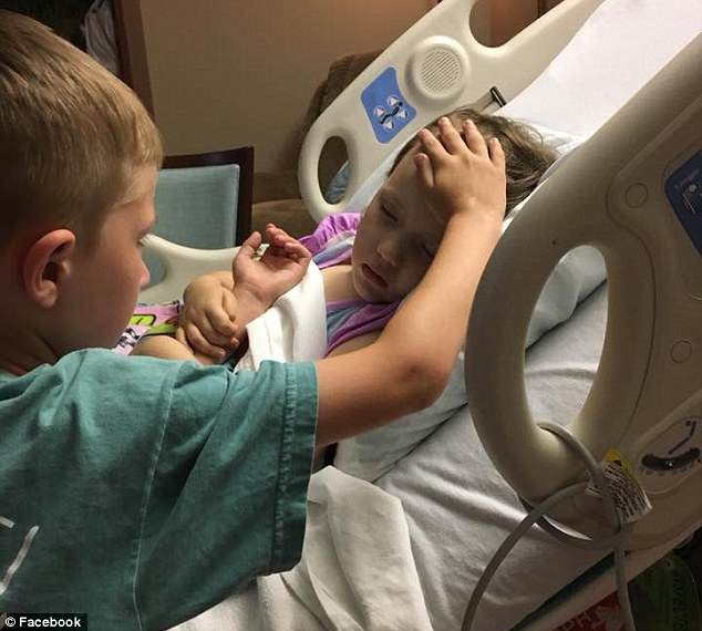 Anh Matt Sooter, cha của bé gái đã đăng tải bức hình con trai mình, bé Jackson, 6 tuổi, nhẹ nhàng vuốt ve em gái trên giường bệnh trong những giây phút cuối đời của em.