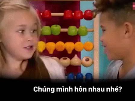 “Cậu có yêu tớ không?”và“Tớ có!”, đoạn hội thoại này dường như chỉ được nghe nhiều ở người lớn. Nhưng thật bất ngờ khi trong cuộc nói chuyện của hai “bạn trẻ” mới chỉ 5 tuổi cũng có nội dung này.