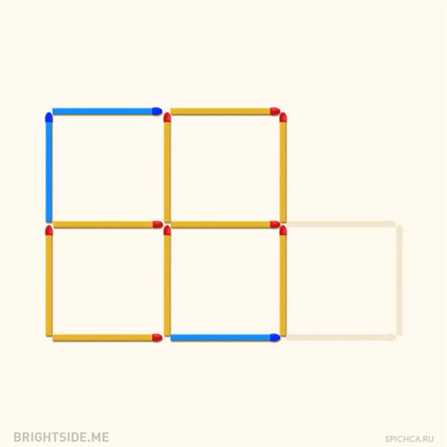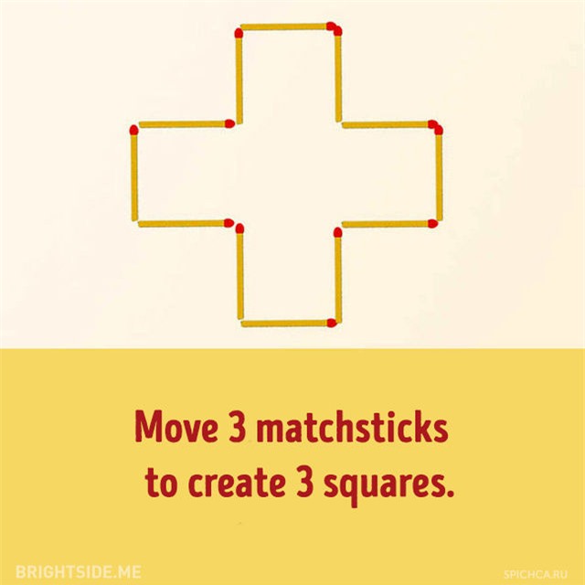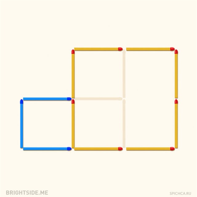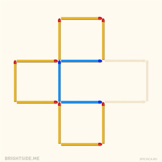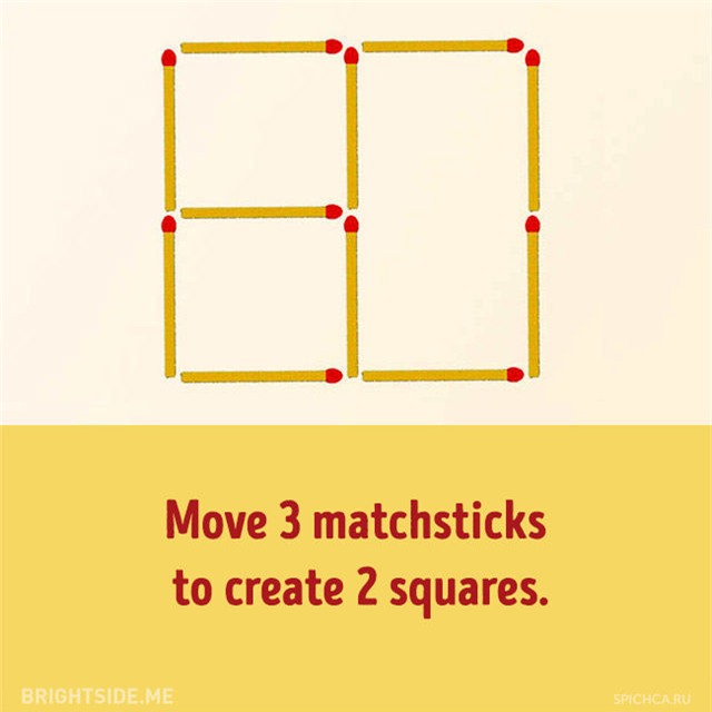 7. Di chuyển 3 que diêm để tạo thành 3 hình vuông