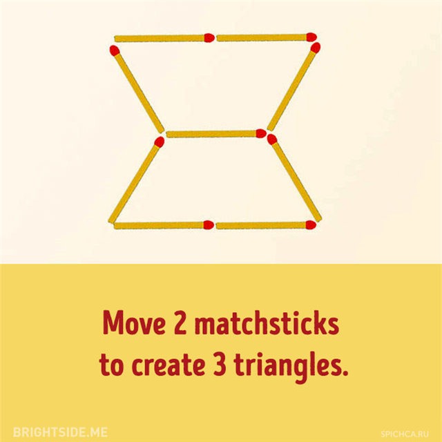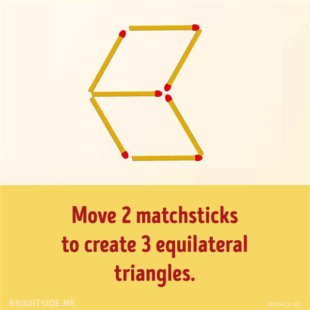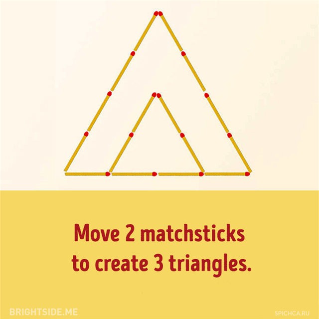 6. Di chuyển 2 que diêm để tạo thành 3 tam giác cân!