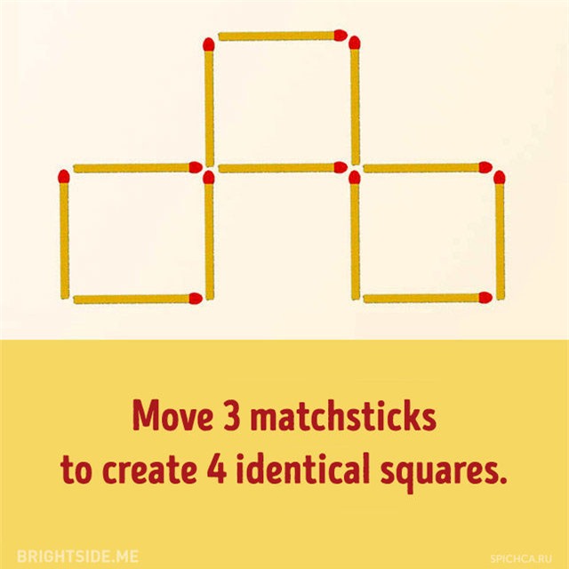 10. Di chuyển 3 que diêm để tạo thành 4 hình vuông bằng nhau.