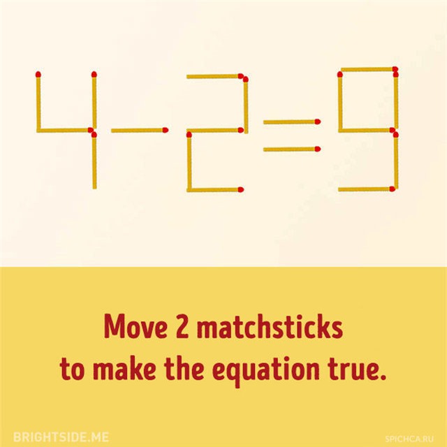 3. Di chuyển 2 que diêm để kết quả bên phải là đúng!