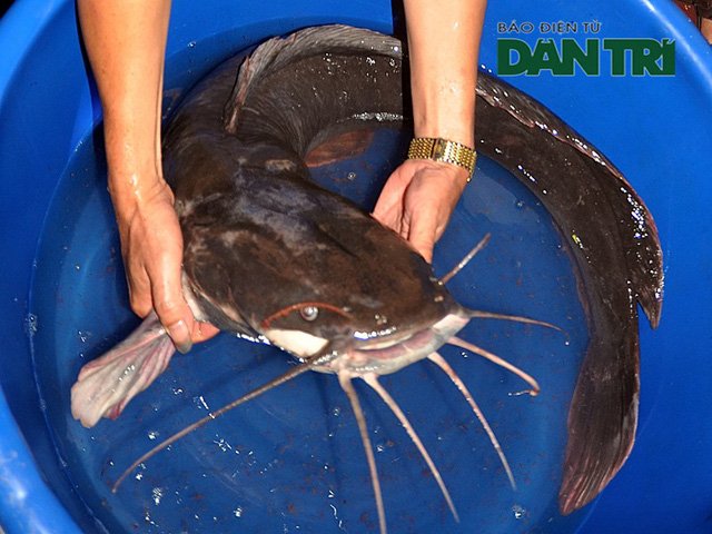 Con cá mà anh Giang bắt được được xác định là loại cá trê, thân trên màu đen, phía dưới bụng màu trắng, chiều dài 1,2m, cân nặng lên tới 27kg.