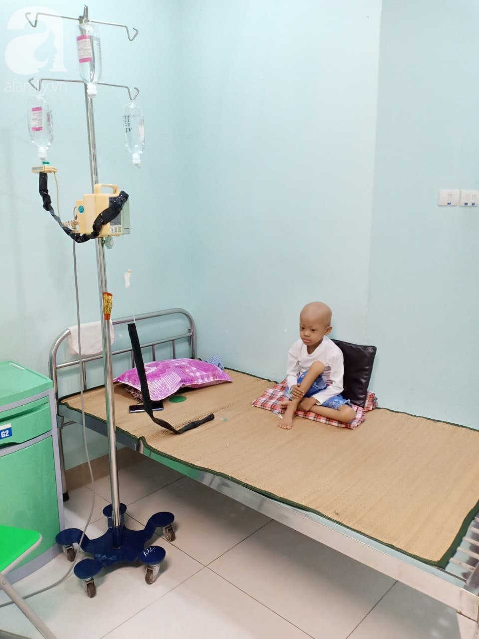 Linh ngồi lặng trên giường bệnh, hướng khuôn mặt hốc hác nhìn xung quanh phòng bệnh rồi lại hỏi mẹ "Sao các bạn cũng bị bệnh, phải nằm viện, phải tiêm đau nhưng vẫn đi lại được mà con lại không? Đến bao giờ con mới được đi lại như các bạn?".