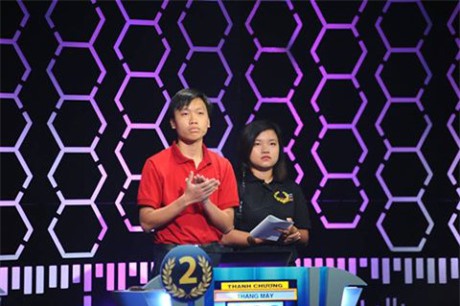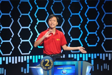 Chàng trai trường THPT quốc học Huế cho biết chỉ cố gắng hết sức để đạt số điểm cao nhất. "Giây phút lo lắng nhất của em là khi bấm chuông trả lời từ khóa của phần Vượt chướng ngại vật, vì đây là phần yếu nhất của em. Khi Tiến Tùng trả lời sai, em rất sợ cũng bị loại khỏi phần thi như vậy, may mắn sao lại trả lời đúng", Hồ Đức Thanh Chương chia sẻ.