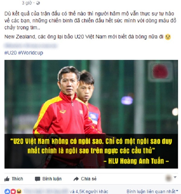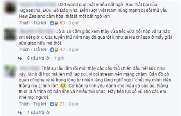 Những gì U20 Việt Nam đã thể hiện trong suốt trận đấu với U20 New Zealand tối qua thực sự không gì có thể diễn tả ngoài hai chữ 'tuyệt vời'. Trên khắp các trang diễn đàn mạng lớn nhỏ, trên khắp các bảng tin facebook không khó để tìm thấy những dòng trạng thái, những bài đăng tự hào, chia sẻ niềm phấn khích về trận đấu tối qua.