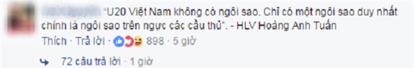 Và có lẽ, 'U20 Việt Nam không có ngôi sao. Chỉ có một ngôi sao duy nhất chính là ngôi sao trên ngực các cầu thủ' của HLV Hoàng Anh Tuấn chính là câu nói được cộng đồng mạng nhắc tới nhiều nhất thời điểm này.